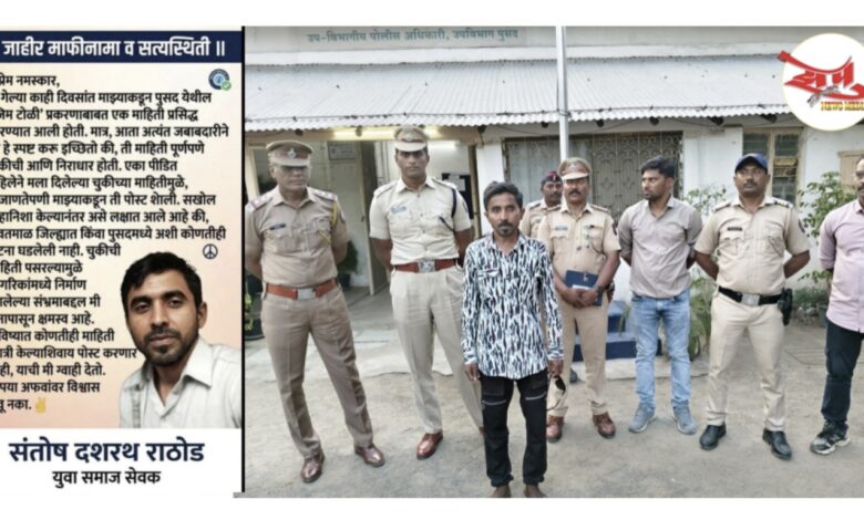 खोदा पहाड, निकला चूहा’ (डोंगर पोखरला आणि उंदीर निघाला) या हिंदी म्हणीचा वापर फेसबुकवर केला आहे.या व्हायरल पोस्टची जिथे खूप मोठी चर्चा, दावे किंवा अपेक्षा निर्माण केल्या गेली परंतु प्रत्यक्षात मिळणारा परिणाम अत्यंत नगण्य व फोल निघाला आहे. सोशल मीडियावर महिलांच्या शोषणाबाबत करण्यात आलेल्या भ्रामक पोस्टप्रकरणी तथागतिक युवा सामाजिक कार्यकर्ता संतोष दशरथ राठोड यांनी माफीनामा सादर केला असून पुसद शहरात या प्रकरणाची मोठी चर्चा रंगली आहे १० ते १६ एप्रिल २०२६ दरम्यान करण्यात आलेल्या पोस्टमुळे शहरासह परिसरात खळबळ उडून दोन समाजांमध्ये तणाव निर्माण होण्याची शक्यता निर्माण झाली होती. या संदर्भात प्रसारमाध्यमांनी आपली सामाजिक जबाबदारी सांभाळून बातम्याही प्रकाशित केल्या होत्या त्यावेळी पुसद पोलीस ऍक्टिव्ह मोडवर आले आणि उपविभागीय पोलीस अधिकारी यांनी तात्काळ विशेष पथके नेमून तपास केल्यानंतर या वायरल पोस्ट पोस्टमधील आरोपांमध्ये तथ्य आढळून आले नाही संतोष राठोड यांनी फेसबुकवर टाकलेल्या विविध पोस्टमधून जिममध्ये शरीरयष्टी कमावणाऱ्या एका विशिष्ट टोळीमार्फत महिलांना जाळ्यात ओढले जात असून ही टोळी माजी आमदार व पदाधिकाऱ्यांच्या सोयीसाठी वापरली जाते, तसेच प्रशासन लोकप्रतिनिधींच्या प्रभावाखाली असल्याचे आरोप केले होते. दि. १० एप्रिल रोजी तीन, ११ एप्रिल रोजी एक, १५ एप्रिल रोजी एक आणि १६ एप्रिल रोजी तीन अशा एकूण आठ पोस्टमुळे शहरात खळबळ उडाली.या प्रकरणाची गांभीर्याने दखल घेत सहायक पोलीस अधीक्षक तथा उपविभागीय पोलीस अधिकारी हर्षवर्धन बी. जे. यांच्या मार्गदर्शनाखाली वसंतनगर पोलीस ठाण्यात दोन विशेष पथके नेमण्यात आली. तपासादरम्यान दिग्रस येथील एका पीडित महिलेने तिच्या परवानगीशिवाय अश्लील व्हिडिओ पॉर्न साइटवर अपलोड केल्याची फिर्याद दिल्याचे समोर आले. त्यावरून पो. स्टे. दिग्रस येथे अप. क्र. ५६/२६ अन्वये भा. दं. सं. कलम ७४, ७९, ३५१(४), ३५६(२) तसेच आयटी अँक्ट कलम ६७ अंतर्गत गुन्हा दाखल करून आरोपीस अटक करण्यात आली असून तो सध्या जामिनावर आहे.तपासात असे निष्पन्न झाले की, संबंधित पीडित महिलेने कोणत्याही जिमचे किंवा राजकीय व्यक्तींचे नाव घेतले नव्हते. मात्र, अधिक कठोर कारवाई व्हावी या उद्देशाने तिने ही माहिती संतोष राठोड यांना दिली होती. त्यानंतर राठोड यांनी चुकीच्या समजुतीतून फेसबुकवर भ्रामक पोस्ट केल्याचे पोलिसासमोर स्पष्ट केले.