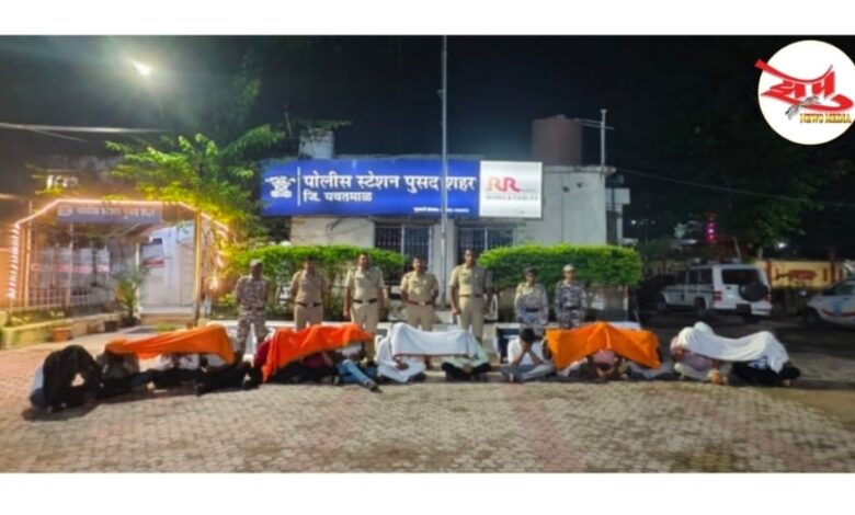 याबाबत झेप न्युजला पोलीस सूत्राने दिलेली माहिती अशी, पुसद पोलीस उपविभागातील पोलीस स्टेशनचे हद्दीतील सण उत्सव काळात सुरु असलेले अवैध धंदे आटोक्यात आणण्यासाठी पुसद शहराच्या उपविभागीय पोलीस अधिकारी तथा सहा-पोलीस अधिक्षकांनी कंबर कसली आहे त्यामुळे अवैध धंदे करणाऱ्याचे धाबे दणाणले आहेत.शहरातील येथील ले-आऊट मध्ये दि, २ ऑक्टोंबर रोजी रात्री २:०० वाजताच्या दरम्यान रात्रीची गस्त घालत असतांना हर्षवर्धन बि.जे. सहा. पोलीस अधिक्षक तथा उपविभागीय पोलीस अधिकाऱी पुसद यांना खबऱ्या व्दारे गोपनिय माहिती मिळाली की, पापीनवार ले-आऊट मधील एका दुर्गामाता मंडळाच्या जवळ असलेल्या इमारतीमध्ये काही लोकं पैसा जिंकण्यासाठी हार-जितचा तिन पत्तीचा जुगार खेळ पैशाची बाजी लावुन खेळत आहे. या माहितीच्या आधारे उपविभागीय पोलीस अधिकारी, यांनी तात्काळ पुसद, आरसिपी पथक व पो. स्टॉफ सह घटनास्थळी तात्काळ रवाना होवुन धाड टाकली. सदर धाडीच्या कार्यवाही मध्ये खालील नमुद इसमांवर गुन्हा दाखल करण्यात आला. आहे त्यामध्ये १) निखील ज्ञानेश्वर गादेवार वय ४२ वर्ष रा. पापीनवार ले-आऊट पुसद, २) यशपाल बाबुसिंग जाधव, ३) मुडे, ४) प्रमोद जिता राठोड वय ३४ वर्ष रा. श्रीरामपुर पुसद, ५) शेख वसीम शेख शकील वय २७ वर्ष रा. शंकर नगर पुसद, ६) सोमेश दिलीप जयस्वाल वय ३१ वर्ष रा. शंकर नगर पुसद, ७) शशांक अरुन नाईक वय ३५ वर्ष रा. श्रीरामपुर पुसद, ८) मयुर श्रीराम भरगाडे वय ३६ वर्ष रा. डुबेवार ले-आऊट पुसद, ९) राहुल सुभाष राठोड वय ३० वर्ष रा. आमटी ता. पुसद, १०) वसंता रेविचंद चव्हाण वय ४३ वर्ष रा. धनकेश्वर नगर पुसद, ११) आशिष प्रेमसिंग पवार वय ३२ वर्ष रा. धनकेश्वर नगर पुसद, १२) प्रविण संभाजी कास्टे वय ३१ वर्ष रा. नविन पुसद, १३) दिपक धारेराव वानखेडे वय ३४ वर्ष रा. सावंगी ता. पुसद, १४) मारोती साहेबराव राऊत वय ३५ वर्ष रा. विठाळा वार्ड पुसद, १५) विशाल गजानन भालेकर वय ३५ वर्ष रा. सावंगी ता. पुसद, १६) विपील श्रीराम आडे वय २६ वर्ष रा. आमटी ता. पुसद असे एकुण १६ लोकांवर महाराष्ट्र जुगार कायदा अंतर्गत कार्यवाही करण्यात आली. सदर कार्यवाही मध्ये एकुण ३४,०००/- रुपये किंमतीचे ७ मोबाईल, एकुण १,७५,०००/- रुपये किंमतीच्या ८ मोटर सायकल व ४,४६०/- रुपये नगदी असा एकुण २,१३,४६०/- रुपये इतका मुद्देमाल जप्त करण्यात आला. सदरची कार्यवाही दि,२ ऑक्टोंबर २०२५ रोजी मा. पोलीस अधिक्षक साहेब, यवतमाळ, मा. अपर पोलीस अधिक्षक यवतमाळ, यांचे मार्गदर्शनाखाली मा. सहा. पोलीस अधिक्षक, तथा उपविभागीय पोलीस अधिकारी, पुसद व आरसिपी पथक पुसद यांचे मार्फत करुन एकुण १६ इसमांवर महाराष्ट्र जुगार कायदा कलम ४,५ प्रमाणे कार्यवाही करुन पो. स्टे. पुसद शहर येथे अपराध क्रमांक ५४२/२०२५ नुसार गुन्हा नोंद करण्यात आला. तसेच हर्षवर्धन ब